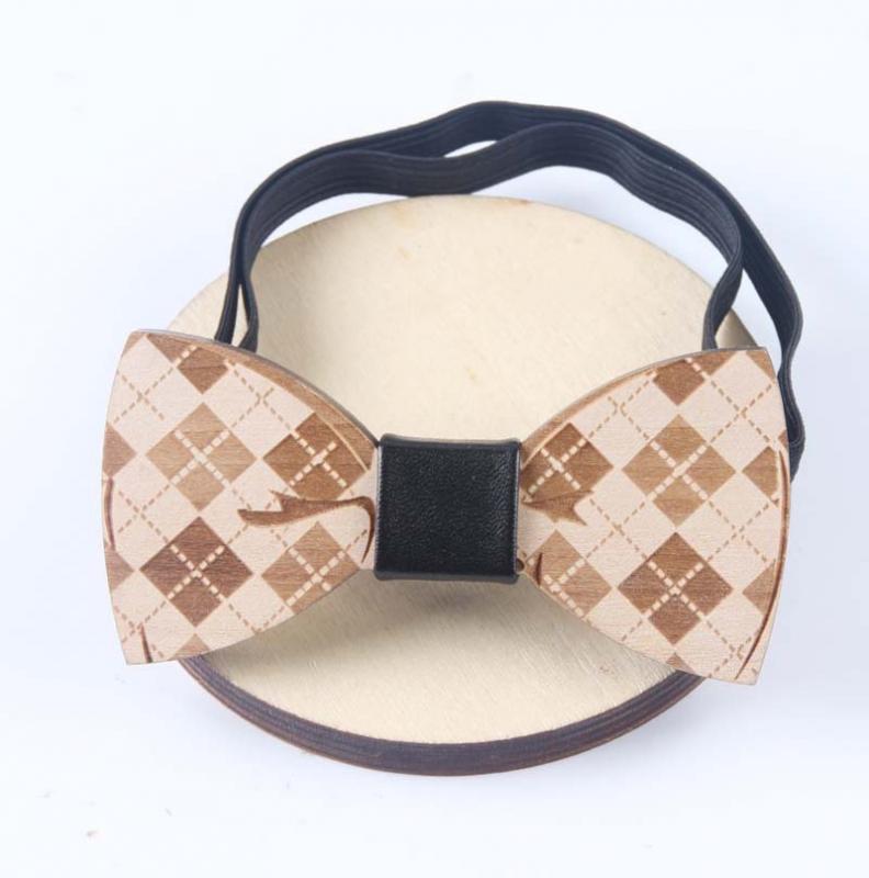 Noeud papillon bois tissu carreaux boho boheme chic access0287
