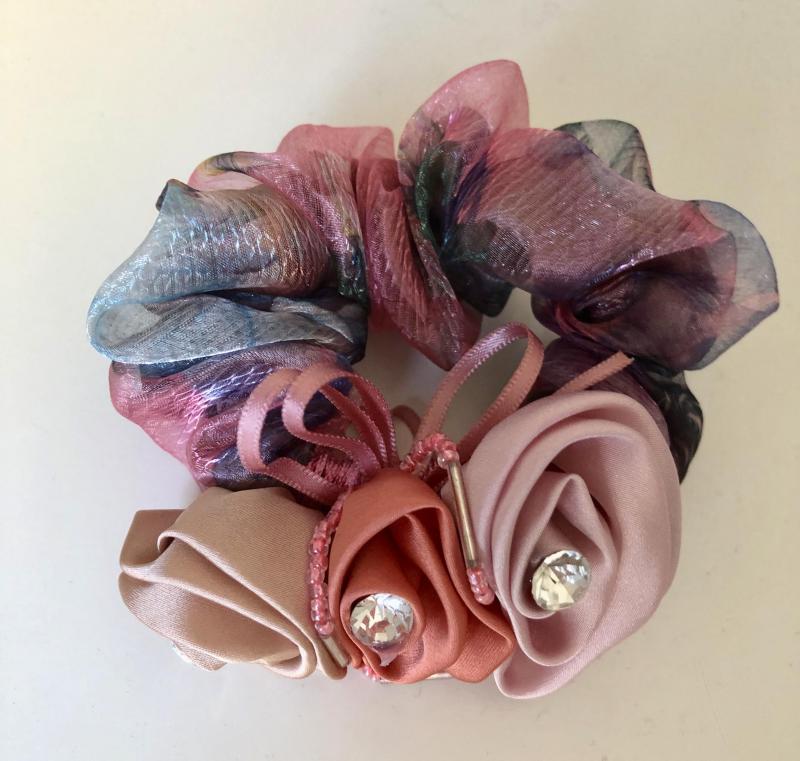 Chouchou tissu perle boho bohème chic ACCCHEV0348