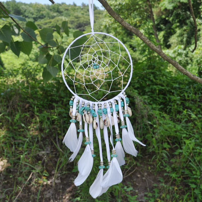 ATTRAPE REVES PLUMES COQUILLAGES TURQUOISES BOHO BOHEME CHIC.
