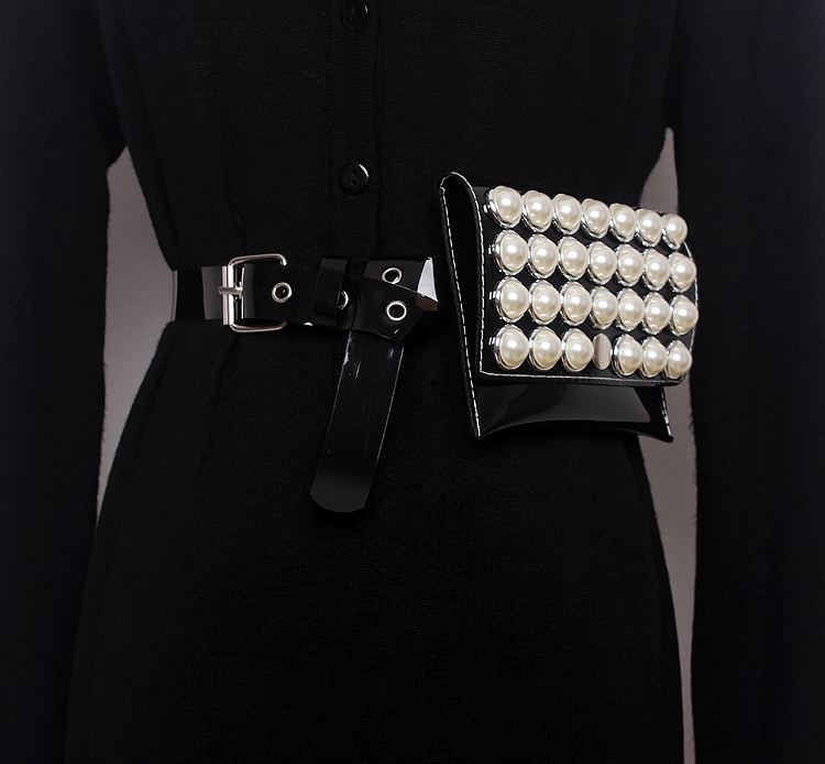 CEINTURE NOIRE POCHETTE GROSSES PERLES BOHO BOHEME CHIC.