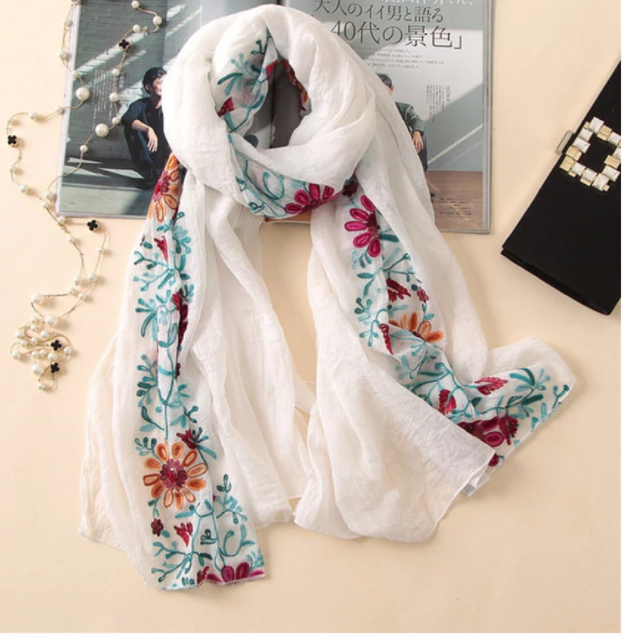 Echarpe foulard brodé boho boheme chic