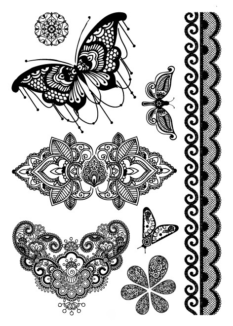 TATOUAGE TEMPORAIRE BLACK LACE PAPILLONS.