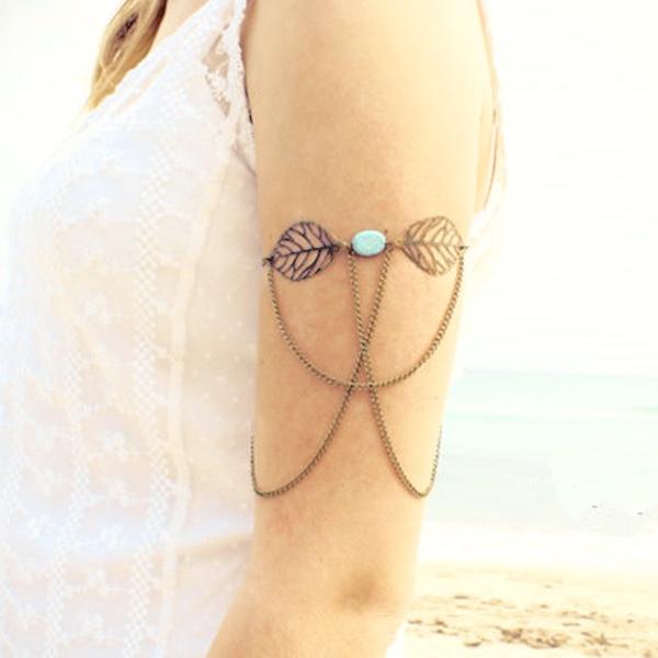 Bracelet bras feuilles turquoise boho bohème chic BIJ0677