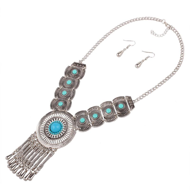 Collier medaillon turquoises + BO boho boheme chic NECK0581
