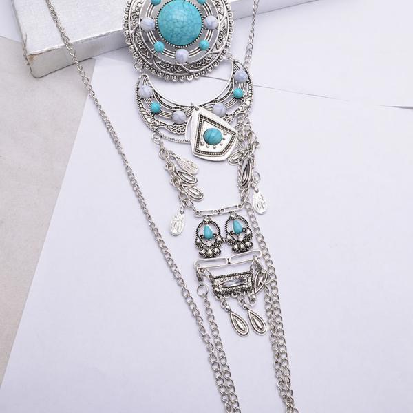 Chaine de corps argentée pièces boho boheme chic