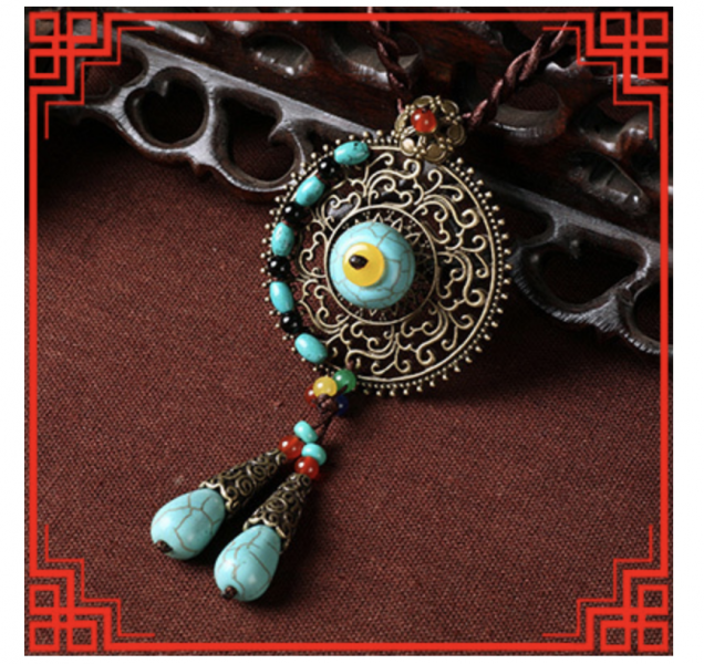 Collier médaillon ethnique tibétain boho boheme chic NECK0758