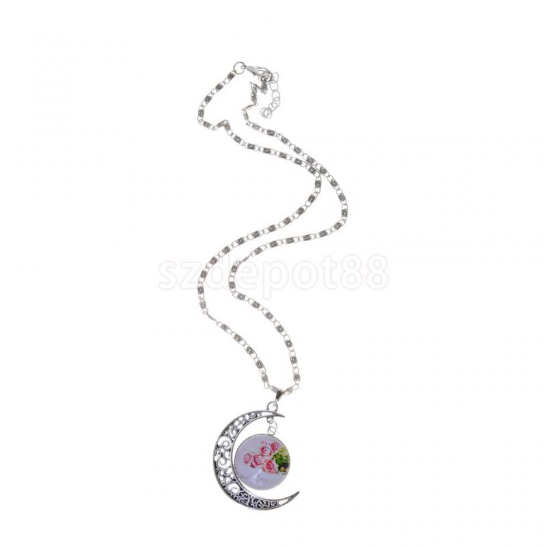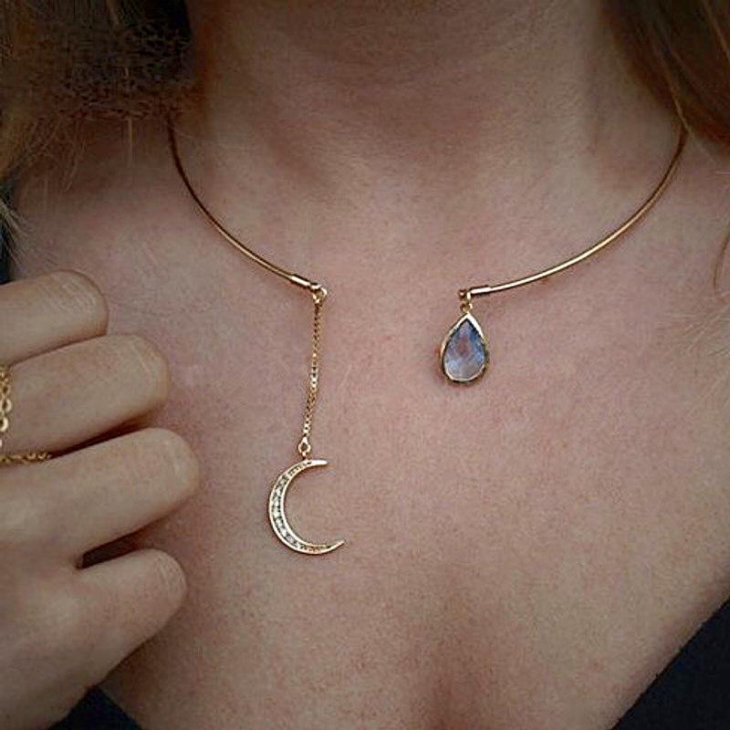 Collier tour de cou pendentif cristal lune boho boheme chic