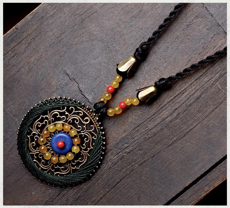 Collier médaillon ethnique tibétain boho bohème chic
