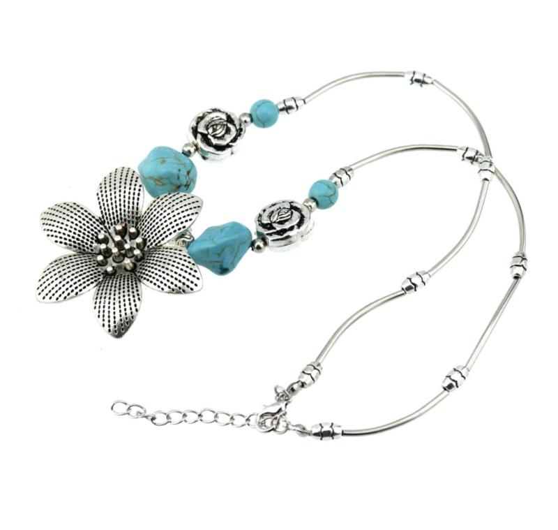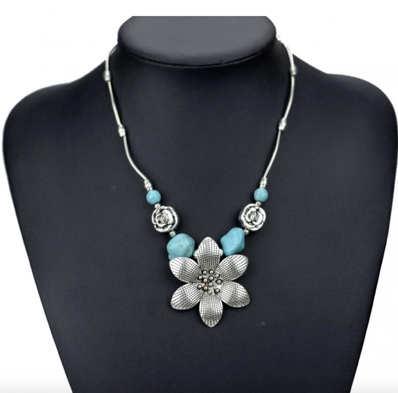 Collier médaillon fleur turquoises boho boheme chic NECK0599