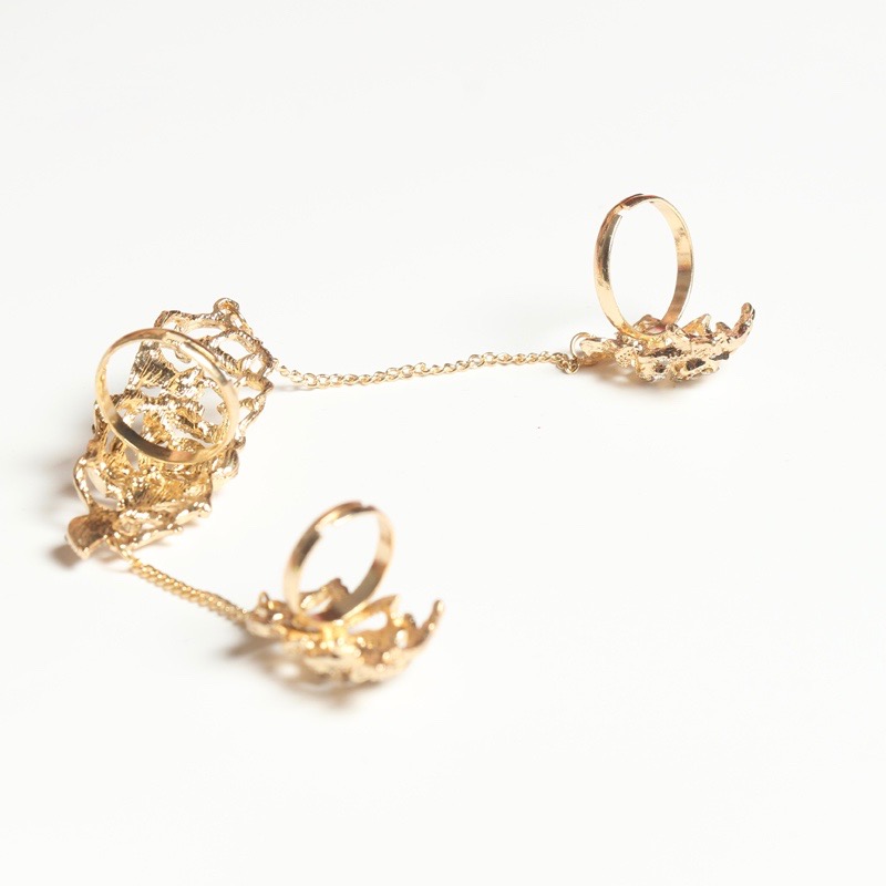 Bague 2 doigts articulée strass dorée boho boheme chic ring0432