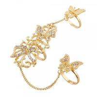 Bague ajustable 2 doigts strass papillons boho boheme chic