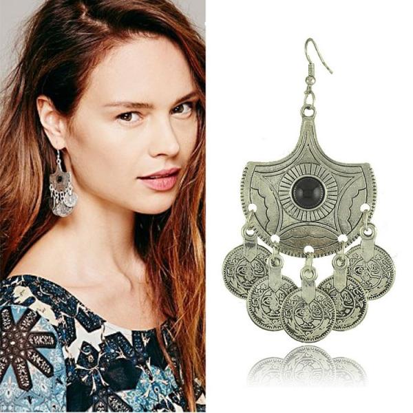 BOUCLES D'OREILLES PAMPILLES PIERRE NOIRE BOHO BOHEME CHIC.
