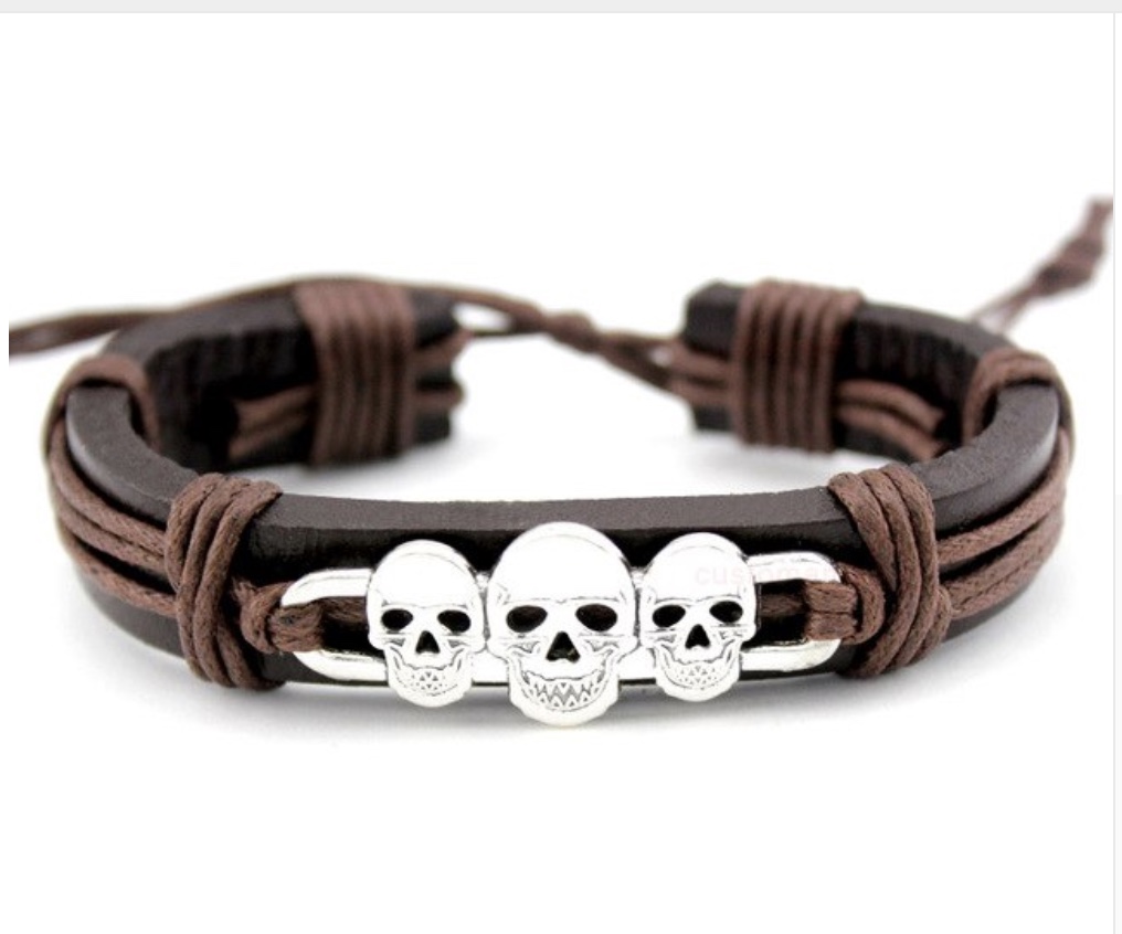 Bracelet cuir têtes mort boho bohème chic BANGLE0539