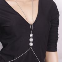 SUPERBE CHAINE DE CORPS ARGENTEE PIECES BOHEME CHIC.