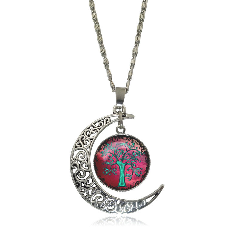 COLLIER CABOCHON CROISSANT DE LUNE ARBRE BOHO BOHEME CHIC.