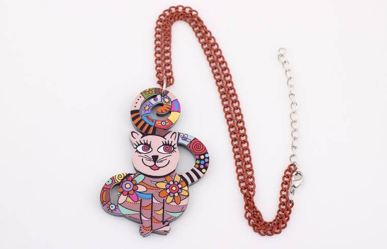 COLLIER PENDENTIF CHAT RETRO VINTAGE BOHO BOHEME CHIC.