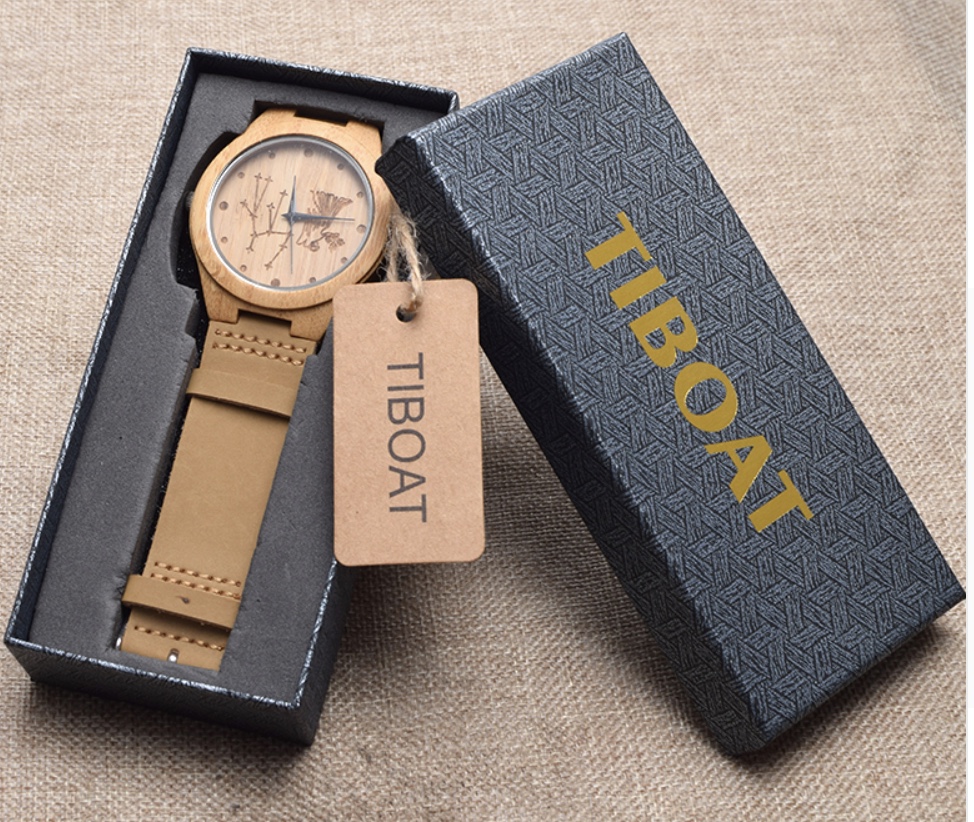Montre boitier bois bracelet cuir boho boheme chic watch0487