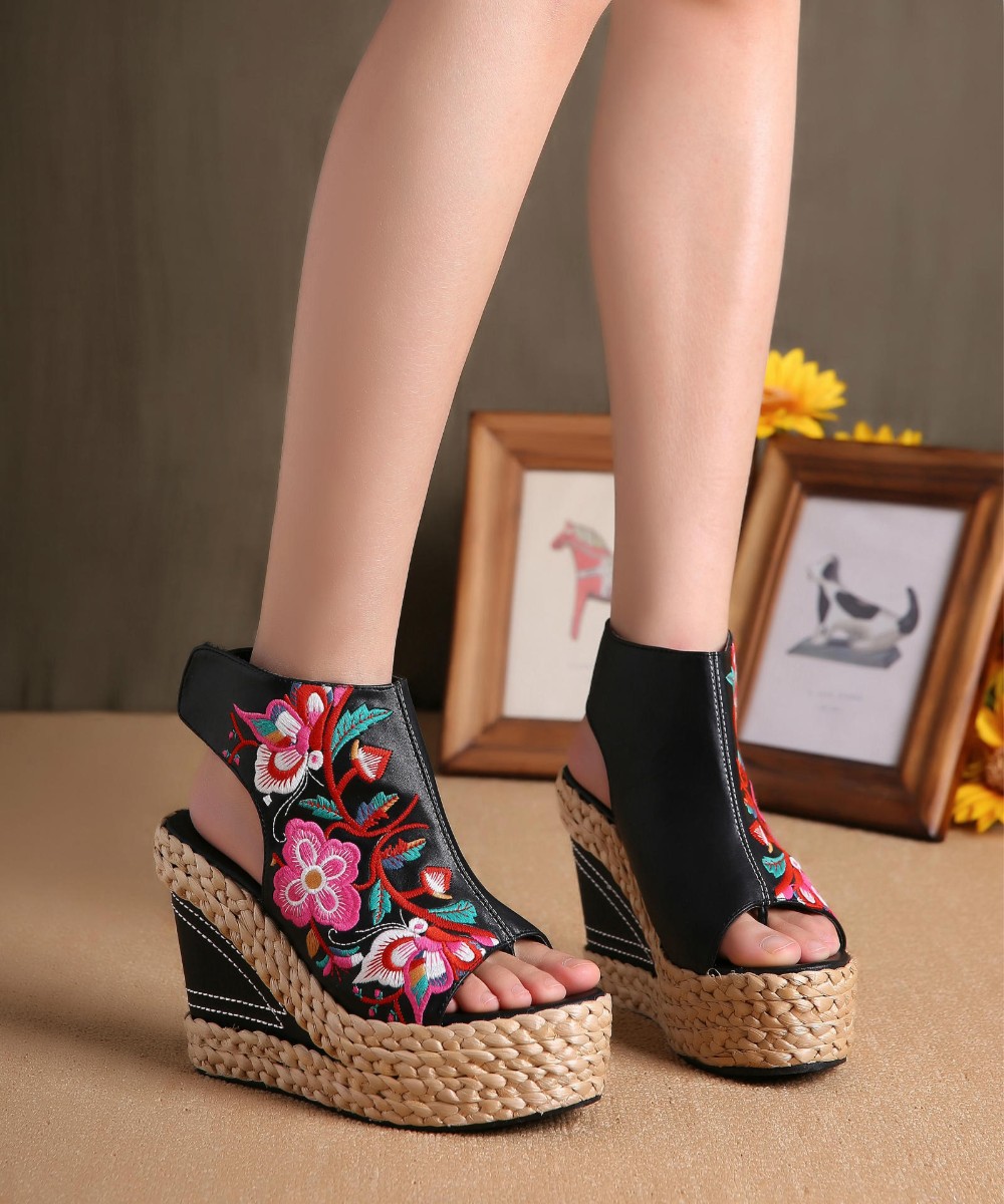 CHAUSSURES BRODEES VINTAGE BOHO BOHEME CHIC.