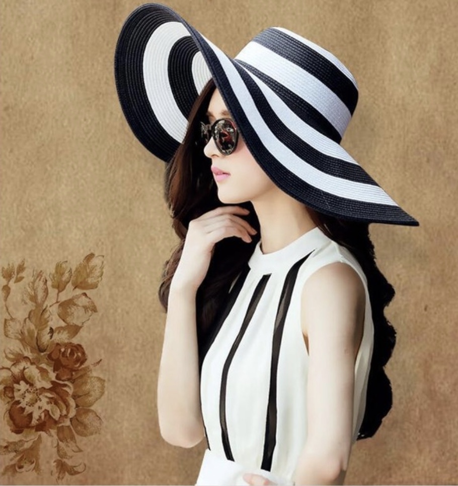 CHAPEAU LARGES BORDS NOIR ET BLANC BOHO BOHEME CHIC.