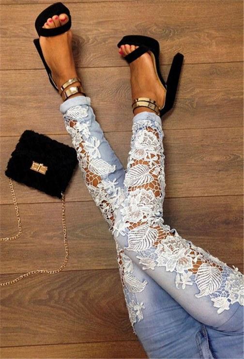 Jean fleurs cousues taille haute marque boho boheme chic JEANS0004