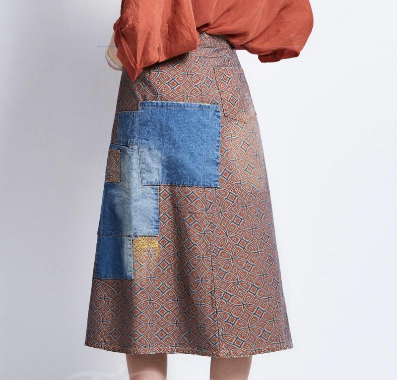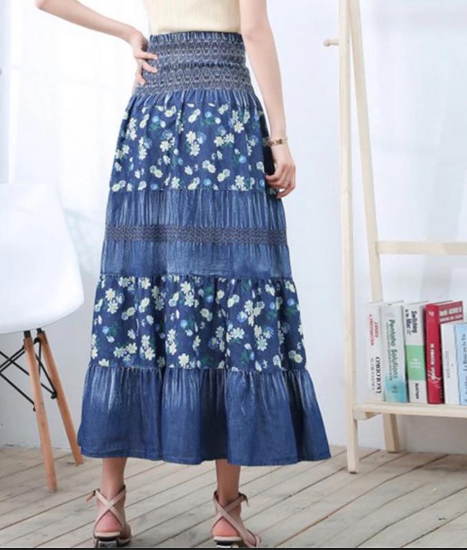 Jupe jean mi longue boho bohème chic SKIRT0260
