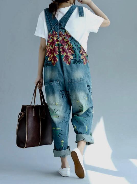 Combinaison jeans imprimée fleurs ample boho bohème chic JEANS0219