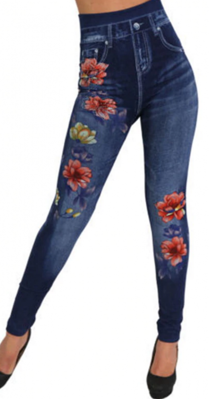 Legging bleu jean imprimé fleurs boho boheme chic legg0217