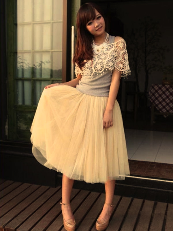 Jupe jupon tulle beige boho boheme chic skirt0183