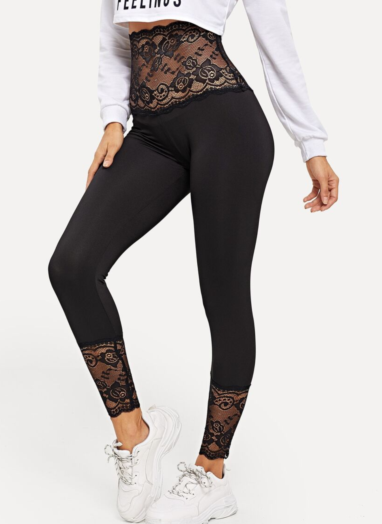 Allure cool & joli caractère. Le legging noir avec dentelle à la taille est L'idée-style : lui donner tous les styles que l'on aime avec des accessoires originaux chaque jour.