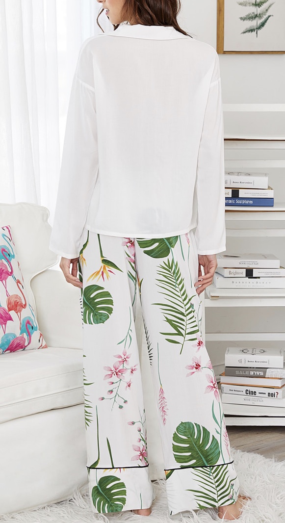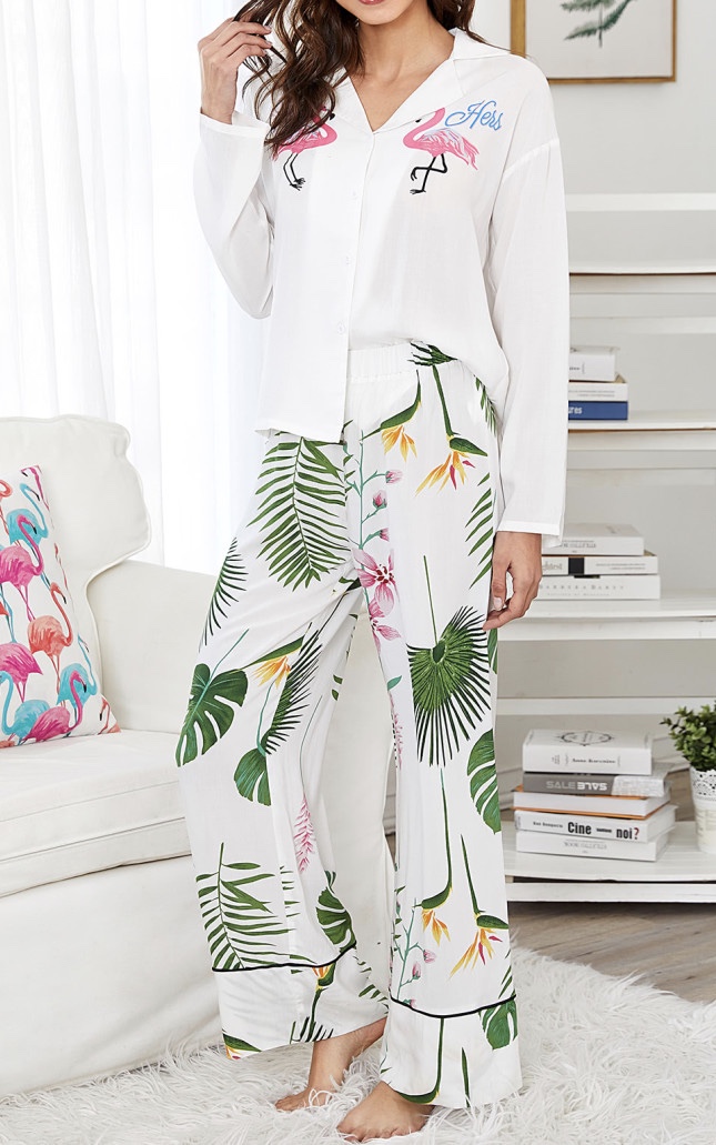 PYJAMA IMPRIME FLAMANT ET VEGETAL BOHO BOHEME CHIC.