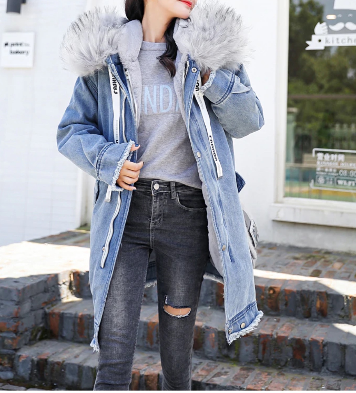Manteau jean capuche boho boheme chic COAT0261