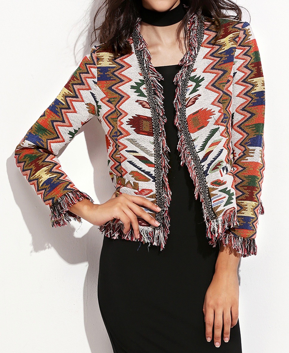 VESTE IMPRIME TRIBAL FRANGES BOHO BOHEME CHIC.