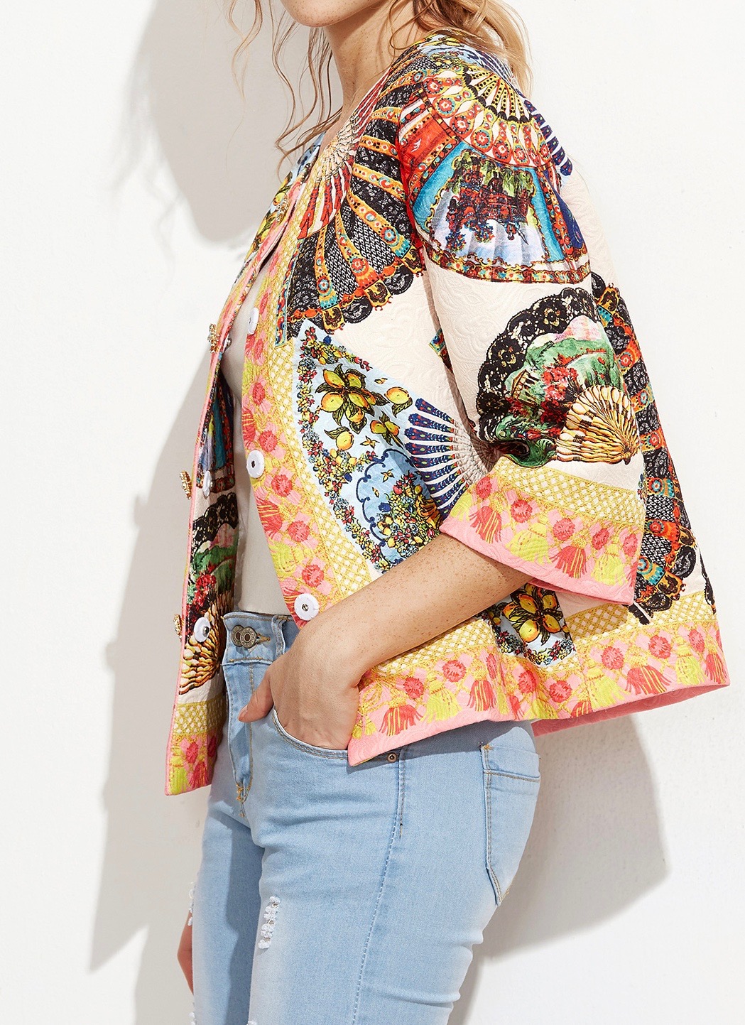 Veste jacquard multi couleurs boho boheme chic coat0227