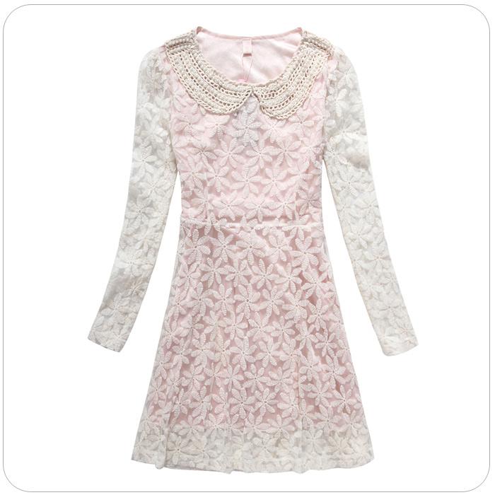 Robe dentelle fleurs rose écru boho boheme chic DRESS0555