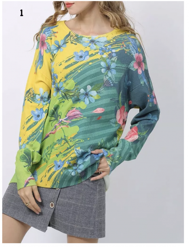 Sweater imprimé feuilles boho boheme chic sweat0253