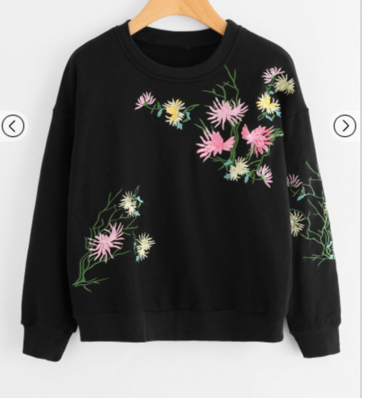 Sweat brodé noir fleurs marque boho boheme chic top0203