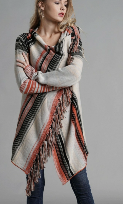 Gilet franges rayures 1 bouton boho boheme chic GIL0502