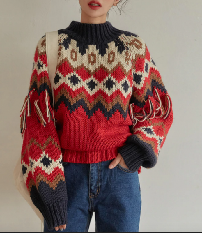 Pull multi couleurs franges manches boho boheme chic pull0517