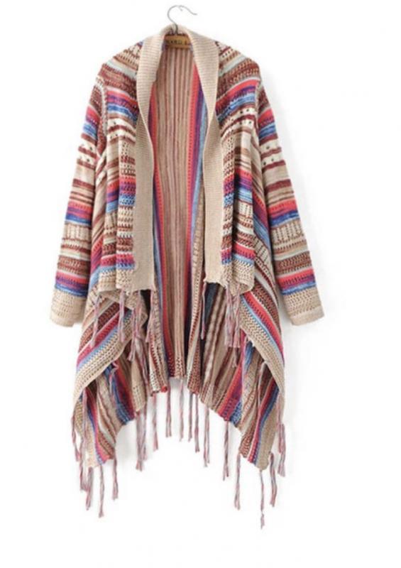 Gilet long rétro franges coloré boho boheme chic gilet0176