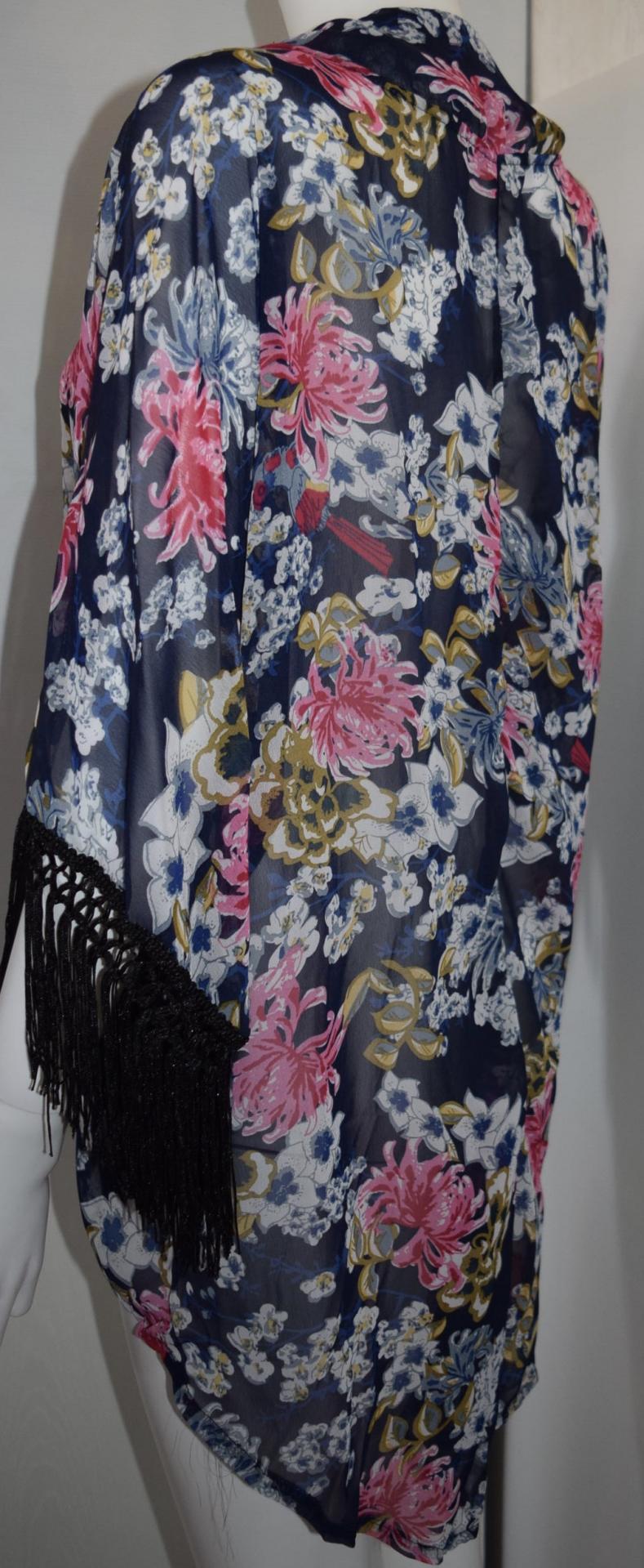 GILET IMPRIME FLOWERS FRANGES BOHO BOHEME CHIC.