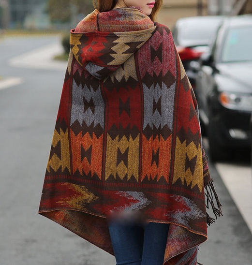 PONCHO CAPUCHE FRANGES BOHO BOHEME CHIC.