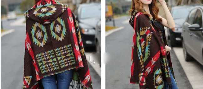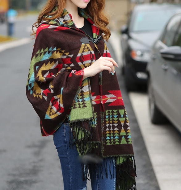Poncho franges capuche ethnique boho boheme chic PONCHO0158