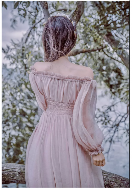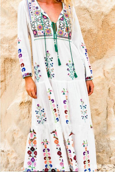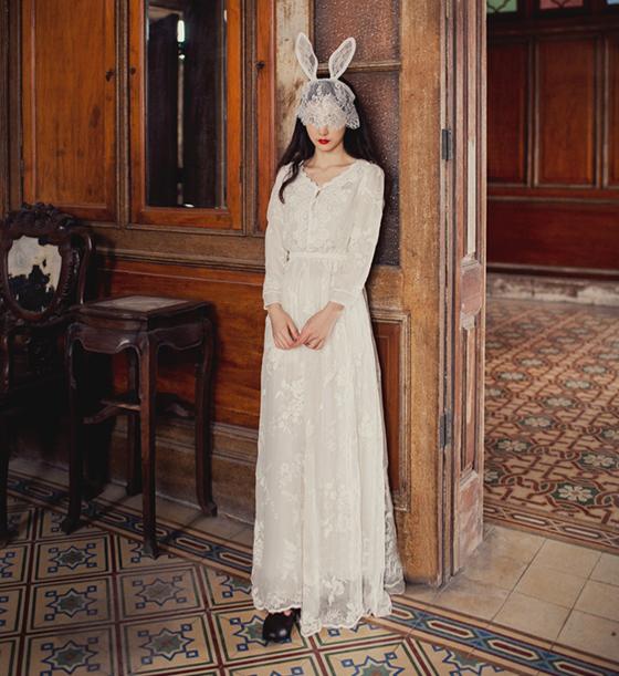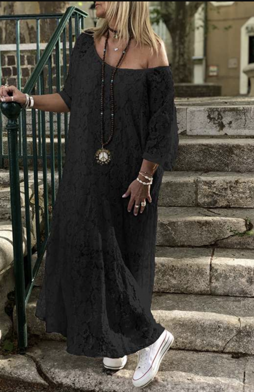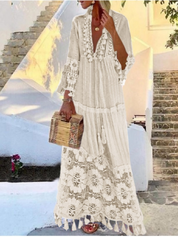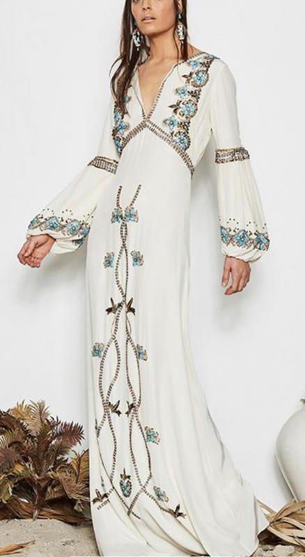 Robe longue dentelle mousseline boho boheme chic DRESSL0507