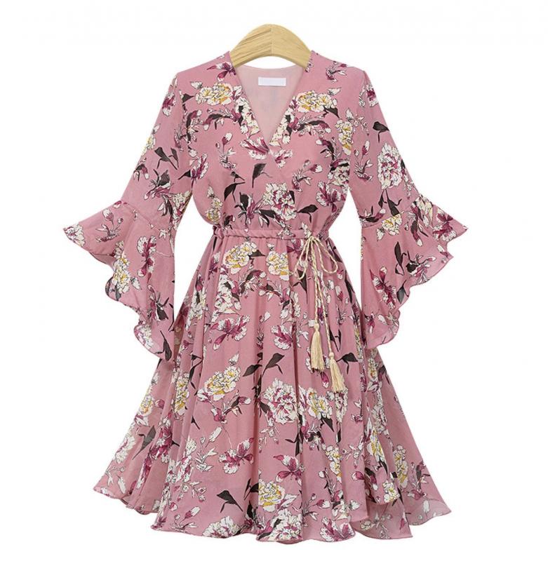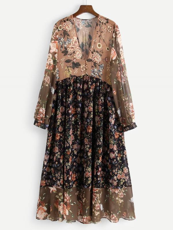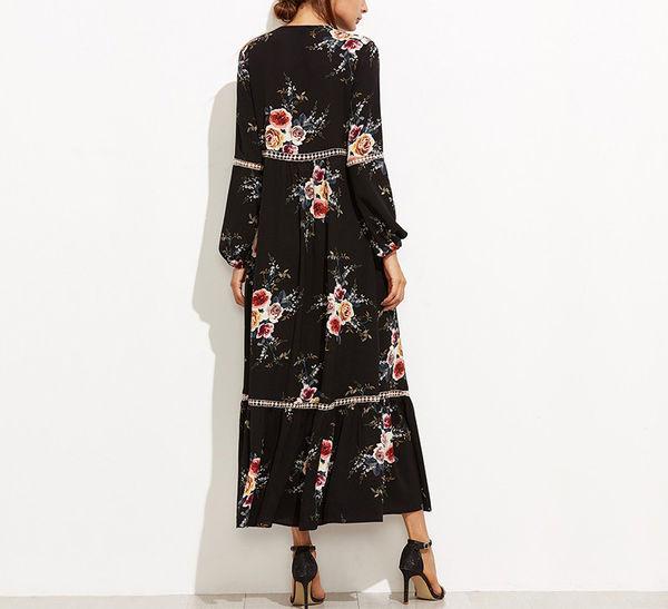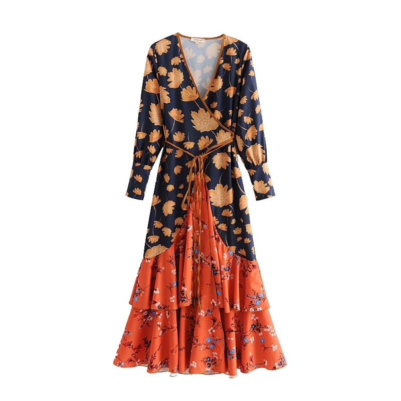 Robe mi longue imprimé fleurs hippie boho boheme chic dressl1310