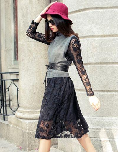 Robe 2 pièces dentelle tricotée boho boheme chic dress0692