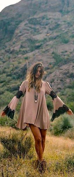 Robe courte ample dentelle boho boheme chic DRESS0801