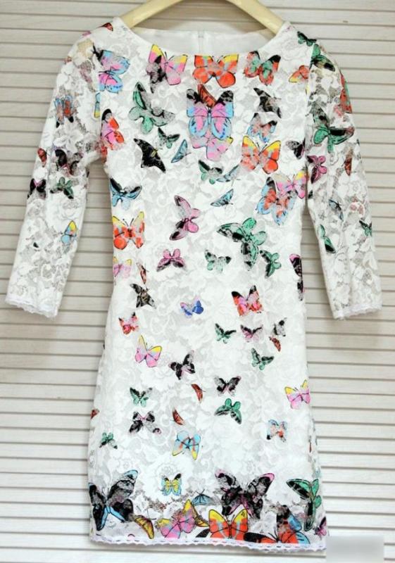 ROBE DENTELLE PAPILLONS BOHO BOHEME CHIC. EN COTON ET POLYESTER.  FOND BLANC. VENDUE SANS...