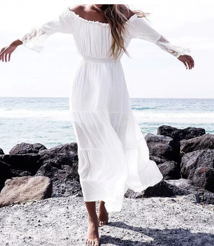 ROBE DE PLAGE BLANCHE DENTELLE BOHO BOHEME CHIC. COTON ET POLYESTER TOUCHER MOUSSELINE. CE MODELE...
