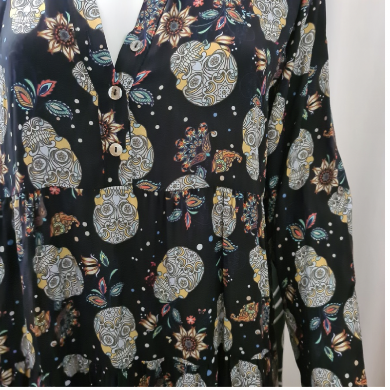 Robe imprimée têtes de mort ample boho boheme chic DRESS1790