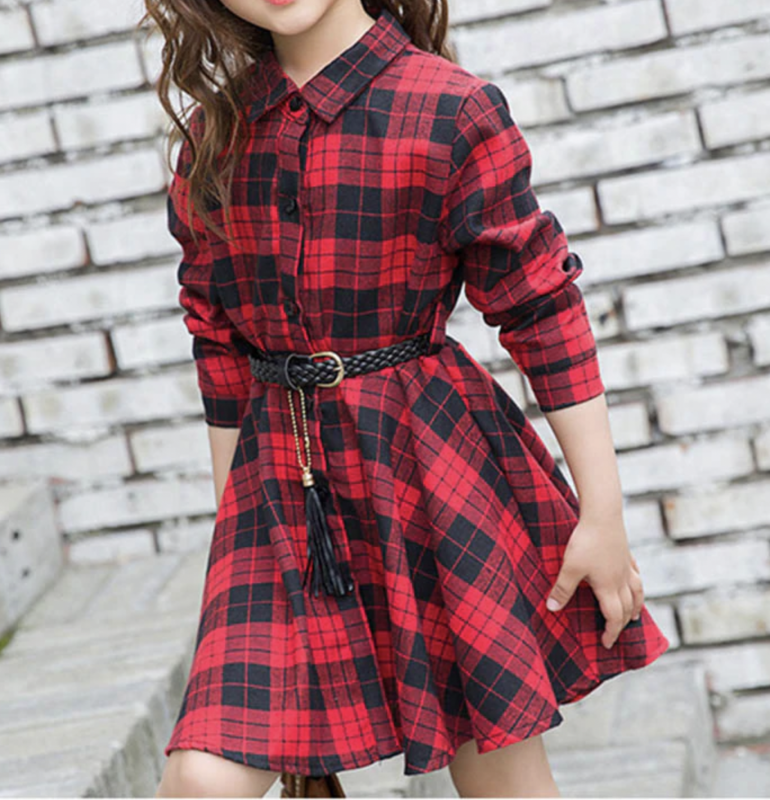 Robe petite fille carreaux ceinture boho boheme chic dresspf1868
